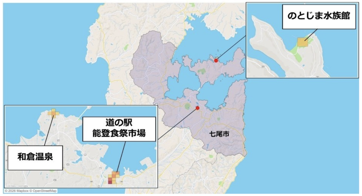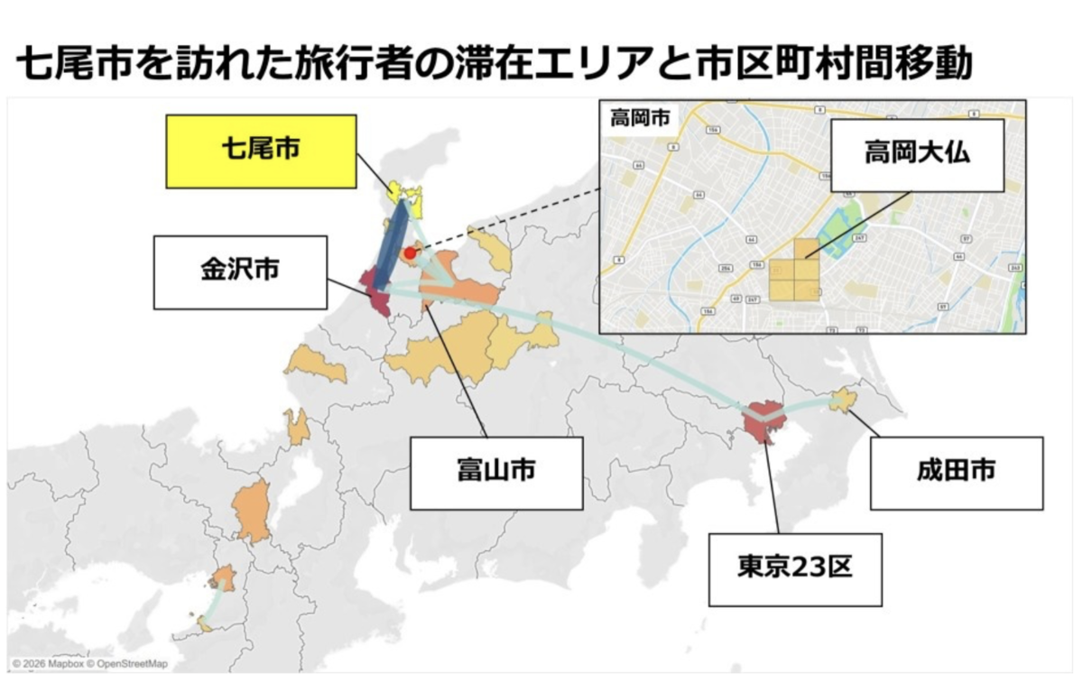 3位の七尾市では、和倉温泉や能登食祭市場、のとじま水族館などでの滞在が見られました。2024年の能登半島地震の影響からの回復や、欧米観光客による自然・ウェルネス志向の旅行需要が背景にあると分析されています。