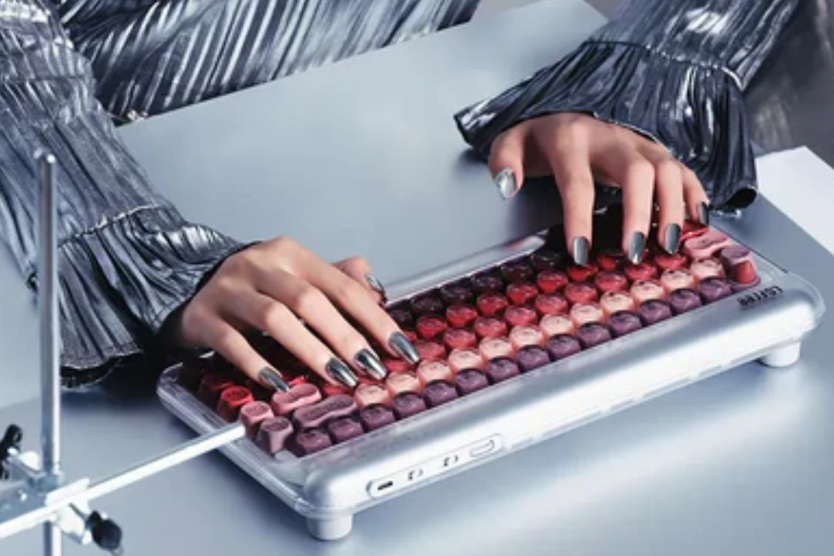 このキーボード、最大の特徴はその名の通り「リップスティック(口紅)」からインスピレーションを得た圧倒的なビジュアル。お気に入りのメイクパレットを開いたときのようなトキメキを味わえる驚きのキーボードです。