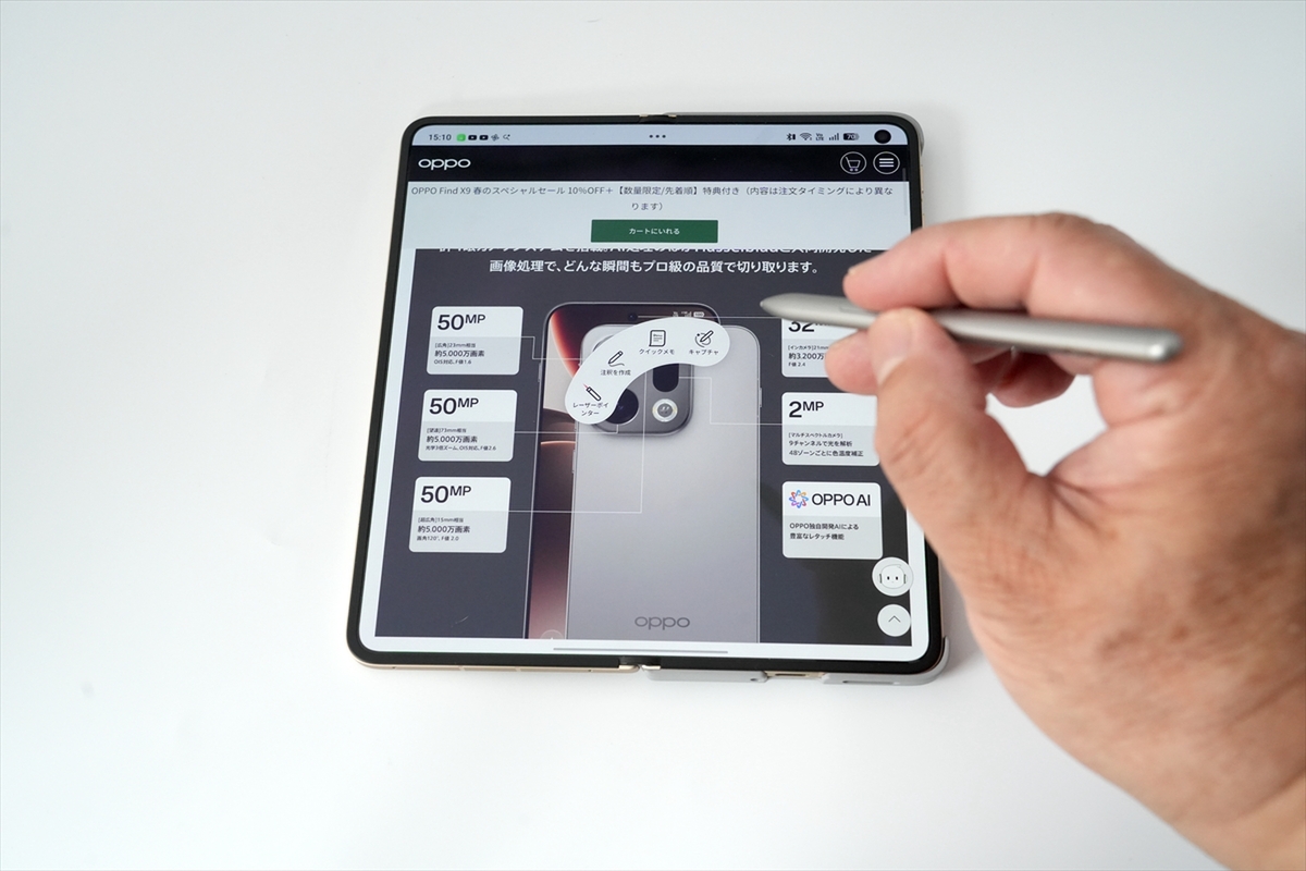 home > ガジェット > 半年後のiPhoneよりも上か? 折り目のない折りたたみスマホ、ペン入力も対応でライバルたちを一気に追い越す 前へ 1 2 3 4 5 あなたが買うべきガジェットは俺たちに選ばせてくれ! 推しガジェット大賞 2026 第105回 OPPO「Find N6」 半年後のiPhoneよりも上か? 折り目のない折りたたみスマホ、ペン入力も対応でライバルたちを一気に追い越す 2026年04月23日 17時00分更新 文● スピーディー末岡/岡本 編集●ASCII ポストする OPPO Find N6ギャラリー ■Amazon.co.jpで購入 OPPO Find N6(ステラーチタニウム) この記事をシェアしよう ポストする 前へ 1 2 3 4 5 週刊アスキーの最新情報を購読しよう Follow @weeklyascii カテゴリートップへ 本記事はアフィリエイトプログラムによる収益を得ている場合があります この連載の記事 この連載の一覧へ この記事の編集者は以下の記事をオススメしています OPPOの折りたたみスマホ、4月14日国内発表 折り目ほぼ無しが話題 OPPO、今年は最高峰モデル「Find X9 Ultra」を日本投入 Xiaomi 17 Ultraとの比較が楽しみ 【技適あり】OPPO「Find N6」は折り目を過去にした驚異の折りたたみ機 日本発売はあるか!? 折り目が見えないだけじゃない! 大画面×専用ペン×ハッセルブラッドが叶える「OPPO Find N6」の真価 折りたたみスマホの弱点克服の「OPPO Find N6」国内登場! もう折り目ガ~とは言わせない Tweets by weeklyascii