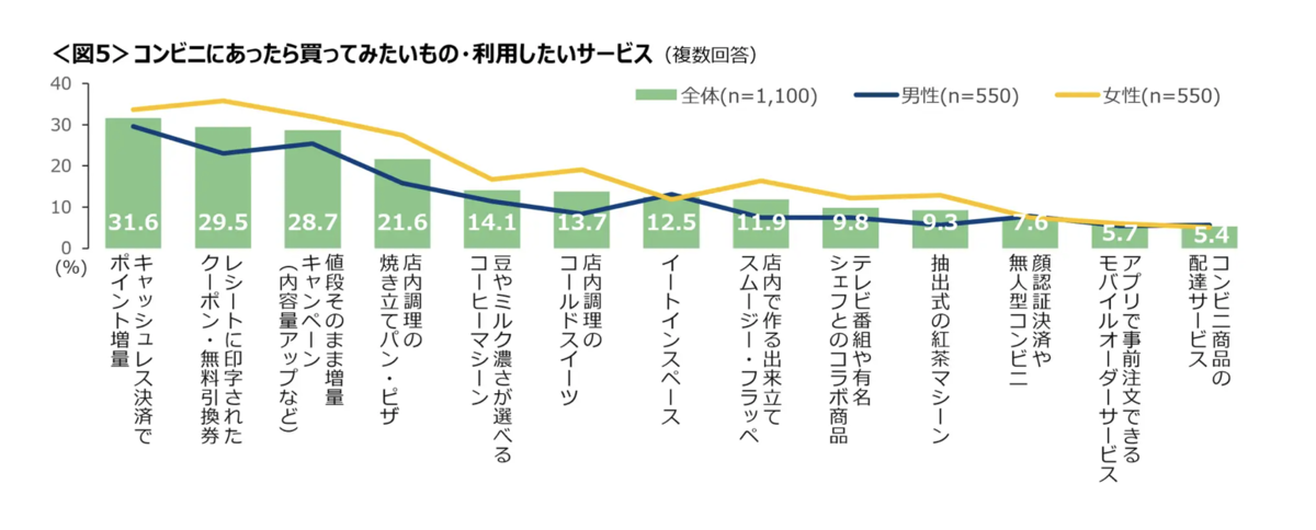 また、女性を中心に、店内調理の「焼き立てパン・ピザ」や「スイーツ」「スムージー」など、専門店のような品質を求めるニーズも確認されています。