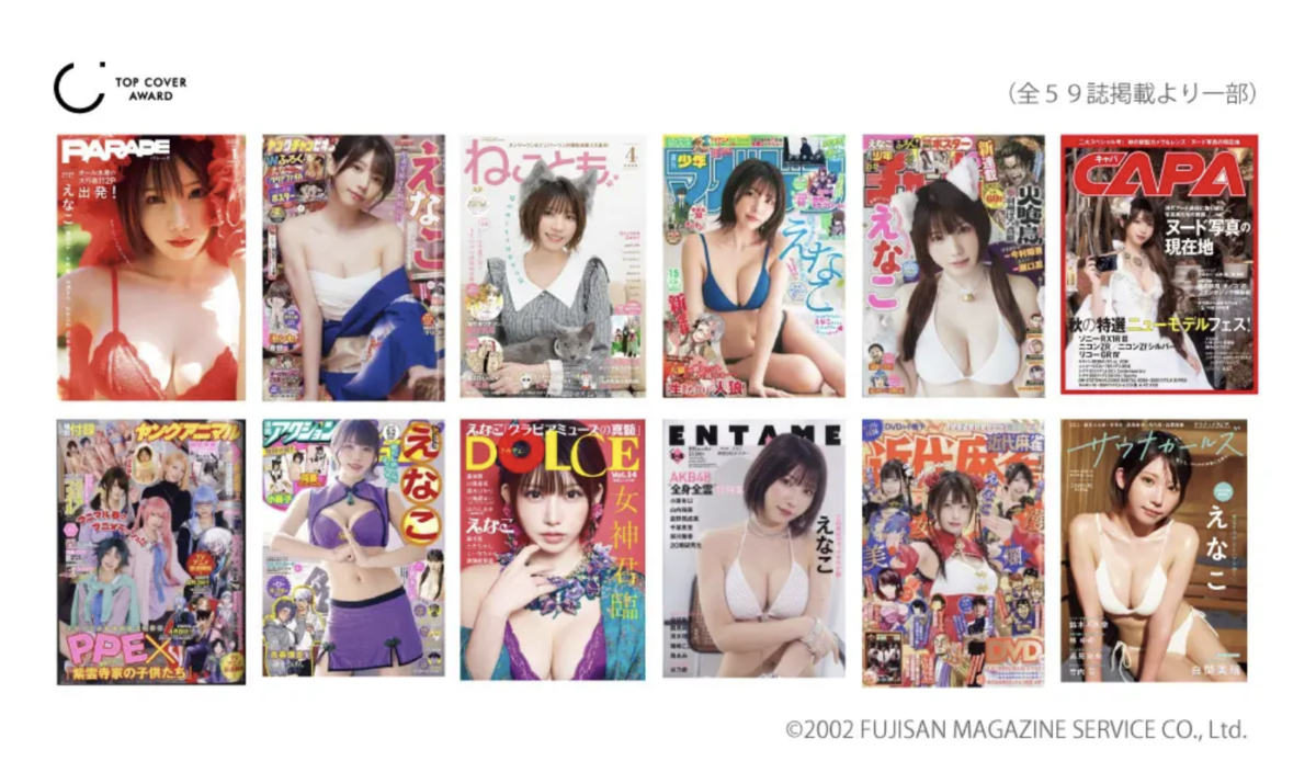 ※2位は同数により複数名えなこは、5年連続で複数誌の表紙を飾るなど安定した実績を持ち、2025年は写真集のヒットやファッションイベント出演、舞台活動など、表現の幅を広げた1年となりました。こうした総合的な活躍が評価され、「殿堂入り」にも認定されています。