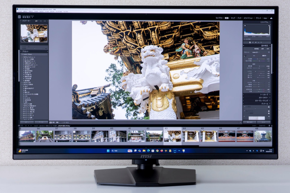 実際、アドビ「Lightroom Classic CC」で作業してみたが、4Kで31.5インチという広い作業領域と発色の良さ、残像感のないスクロールなど、クリエイティブな作業にもピッタリ。現像で一番気を使う色味調整も、このディスプレーならとてもやりやすかった。