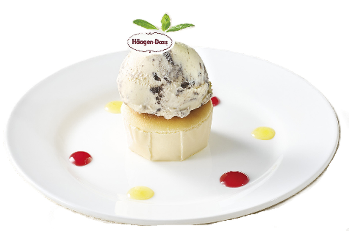 その他、ハーゲンダッツのクッキー&クリームアイスクリームを軸に、自家製プリンやパイ、バスクチーズケーキなどのスイーツと組み合わせたメニューが用意されます。