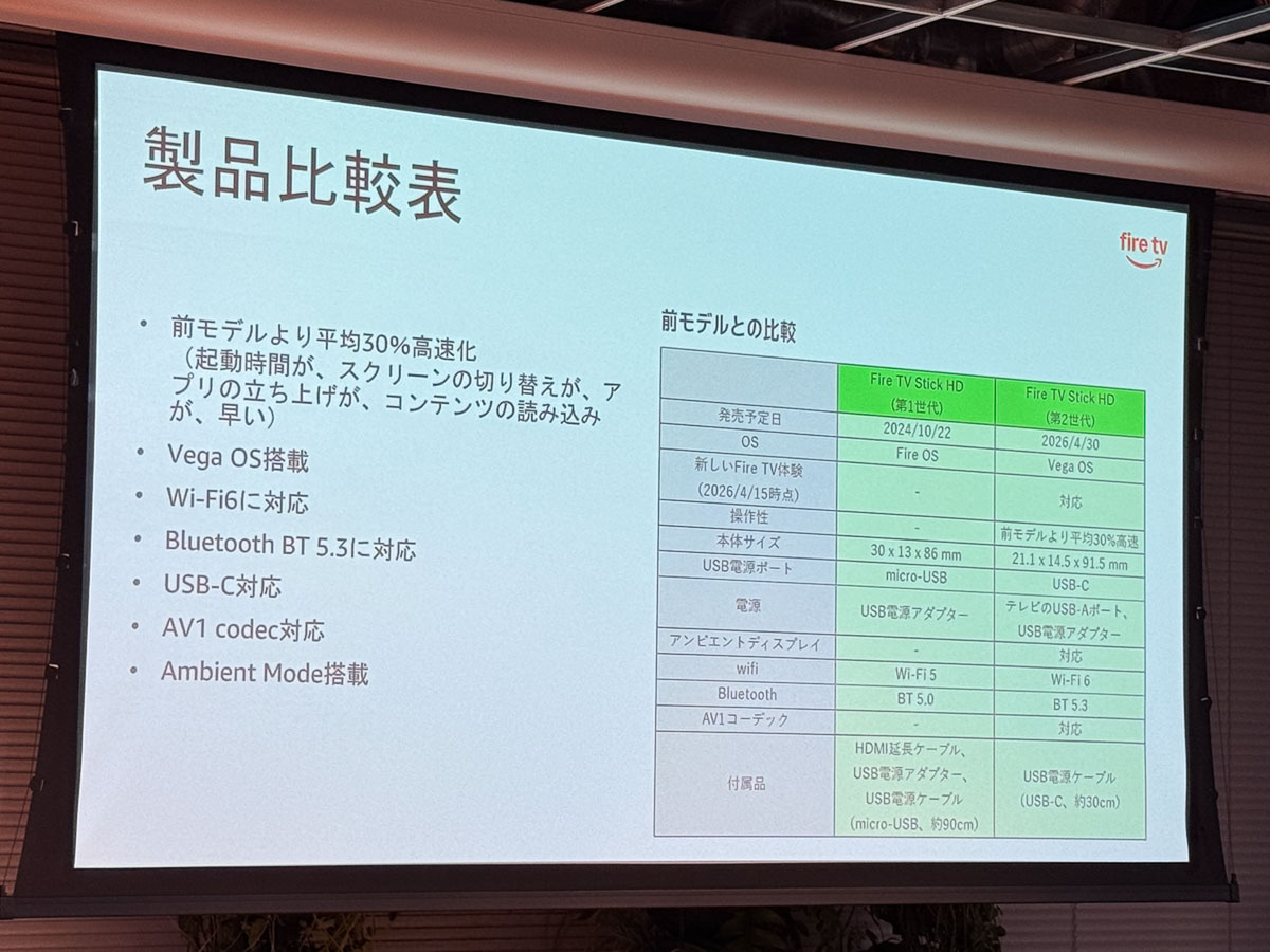 Amazonは4月15日、新しい「Fire TV Stick HD」を発売しました。筐体は従来より30%もスリム。HDMIケーブルとほぼ変わらない幅の新デザインとなりました。これは大きなメリットです。