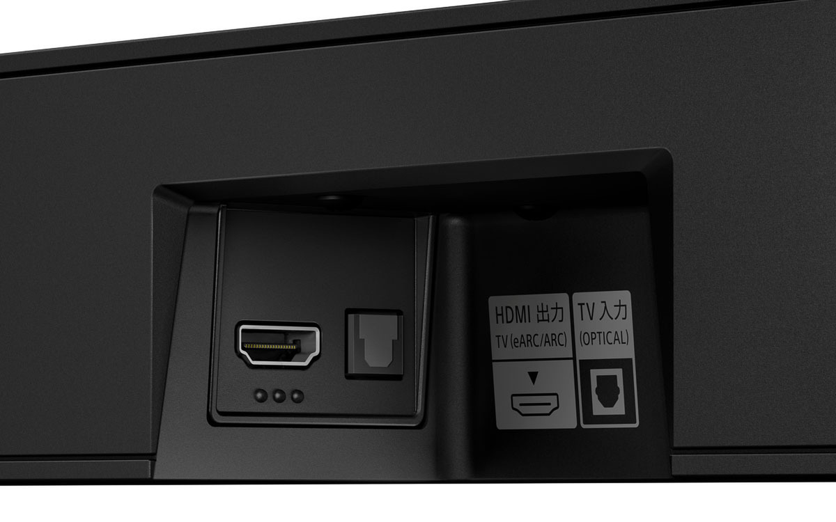 出力端子はARC/eARCに対応。バー単体で360 Reality Audioの再生が可能なほか、eARCで対応するテレビと接続した場合は、テレビで再生しているIMAX Enhanced、Dolby Atmos、DTS:Xなどの音源を広がりのある音で再生できる。