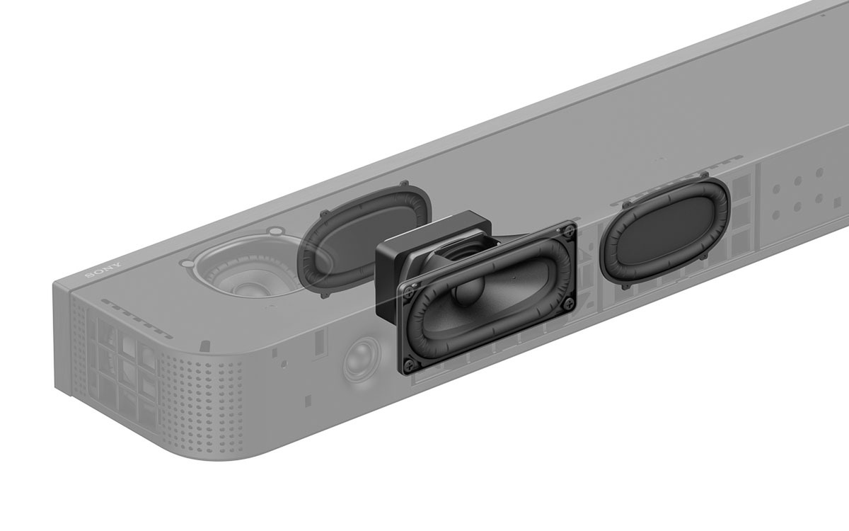 HT-A3000シリーズの後継的な位置付けで、フロントL/Rは45×108mmのX-Balancedウーファーと16mmのソフトドームツィーターを組み合わせた2Way仕様。ほかに46×54mmのセンタースピーカー、サイドスピーカー、上方に向けたイネーブルドスピーカーを備えている(各ユニットのサイズは同じ)。
