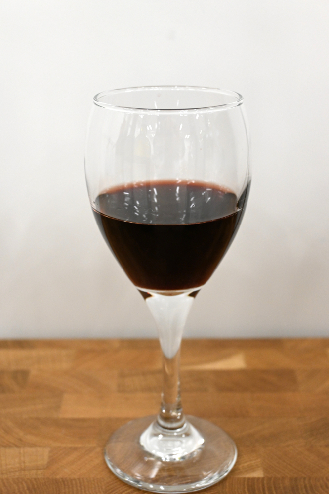 グラスに注ぐと、色は深みのある鈍色。光にかざすと、奥にルビーのような赤がのぞいています。