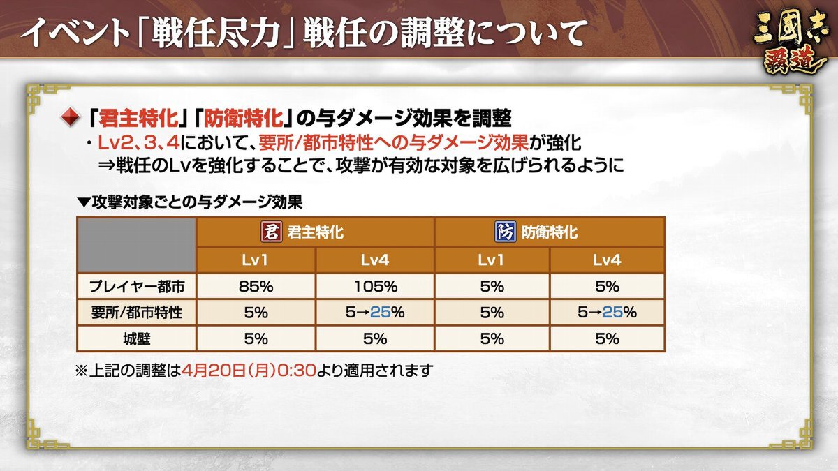 コーエーテクモゲームスは4月16日、PC(Steam/Google Play Games)/iOS/Androidでサービス中のMMO戦略シミュレーションゲーム『三國志 覇道』について、4月アップデートを実施したと発表。以下では、その内容の一部を紹介しよう。