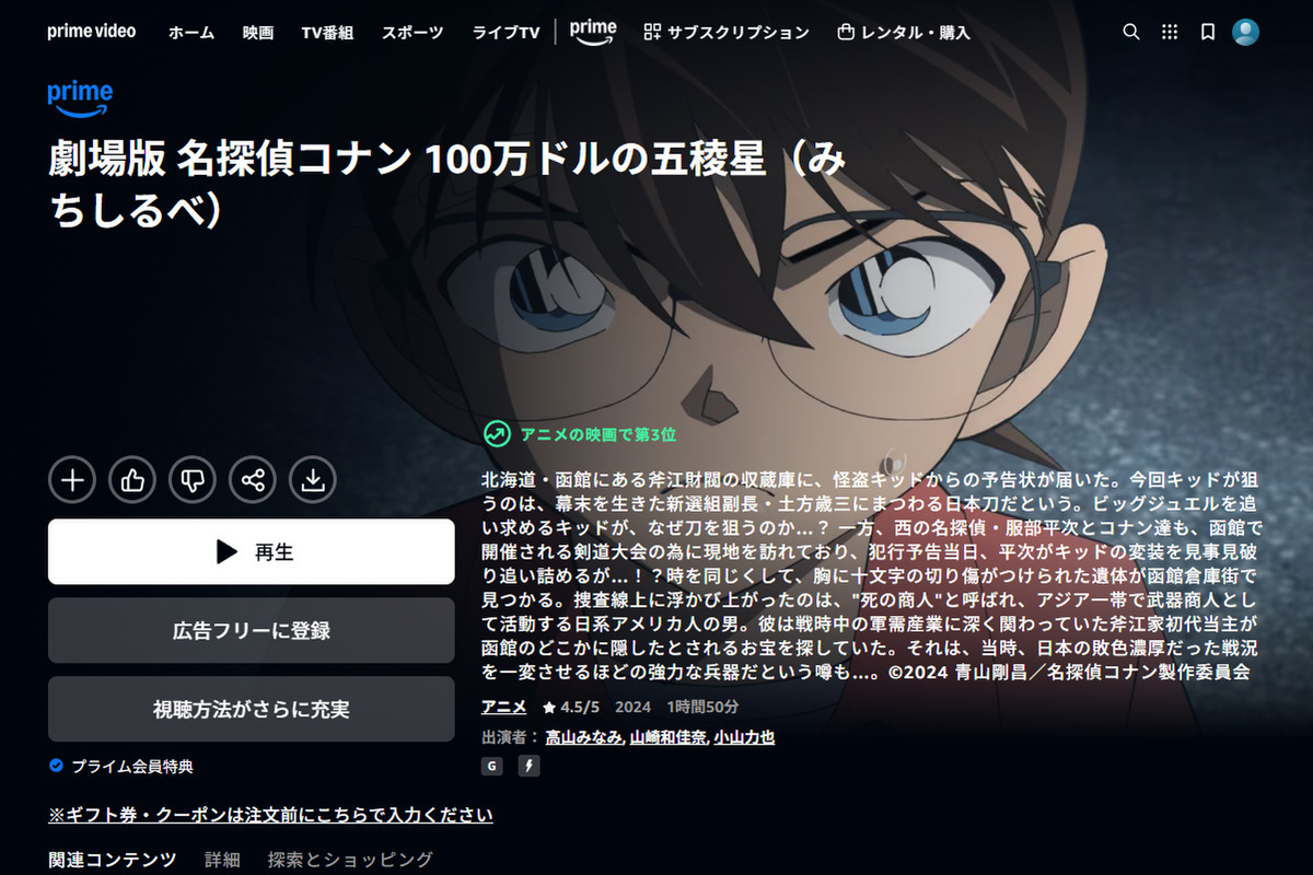 劇場版『名探偵コナン』過去作を続々公開中【Amazonプライム・ビデオおすすめ情報】