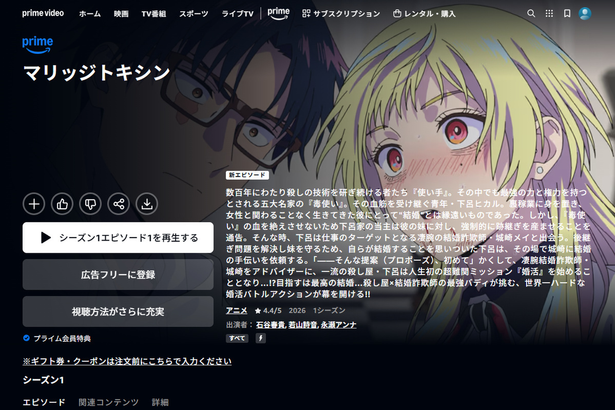「ジャンプ+」の人気作『マリッジトキシン』がアニメ化!【Amazonプライム・ビデオおすすめ情報】