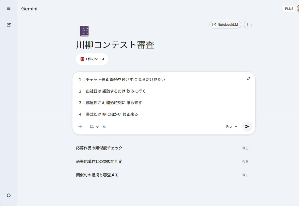 これが意外に難しく、川柳などの短い作品は、使う言葉が違っても、言いたいことやオチの形が同じことがある。キーワード検索だけでは見逃しやすく、結局は人が読んで判断するしかなかった。