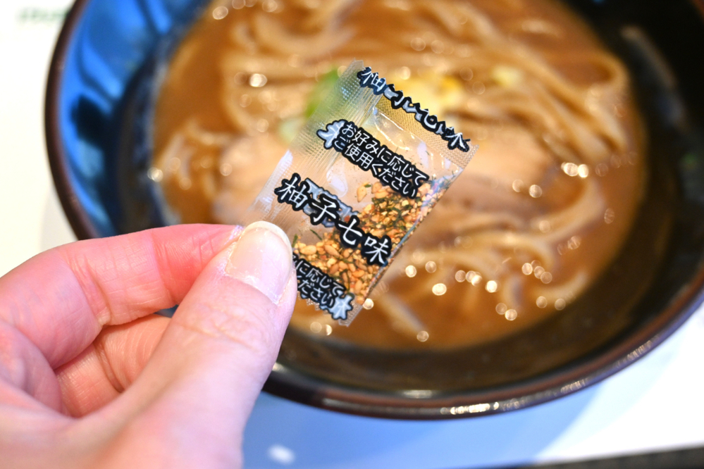 別添の柚子七味を加えると、さわやかさがさらにアップ。