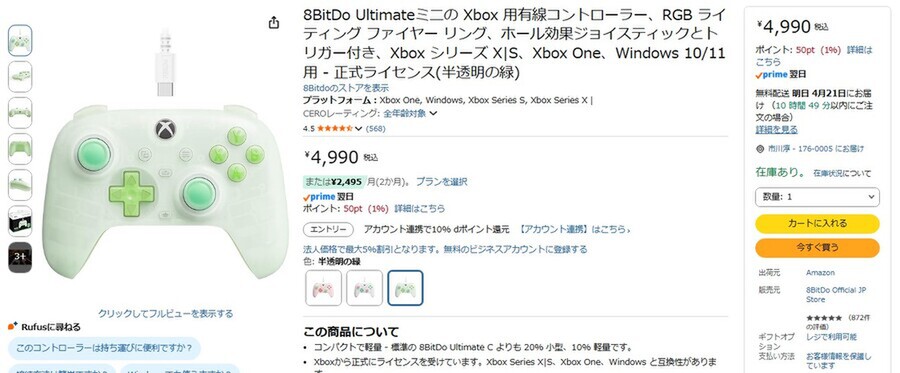 Amazon.co.jpにて、Xbox・PC対応のコントローラー「8BitDo Ultimate Mini」が販売中だ。価格は4990円。