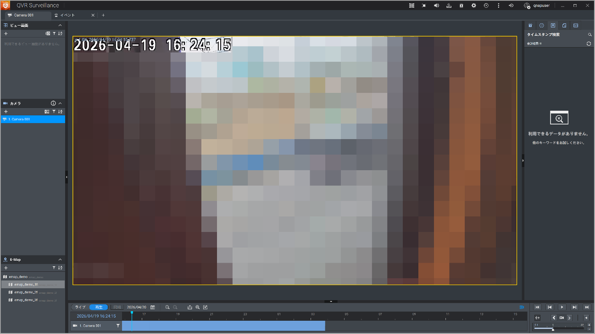 「QVR Smart Search」アプリは、画面上部にある「カメラの表示」をクリックすると、別途アプリをインストールすることが促され、PCにダウンロードしてインストールする。インストールされた環境なら、「カメラの表示」をクリックすると自動的に起動してくれる。