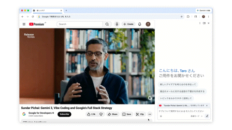 日本も対応、ChromeにGeminiがついに来た! 長〜い動画の要約からメール送信までブラウザーでできちゃう