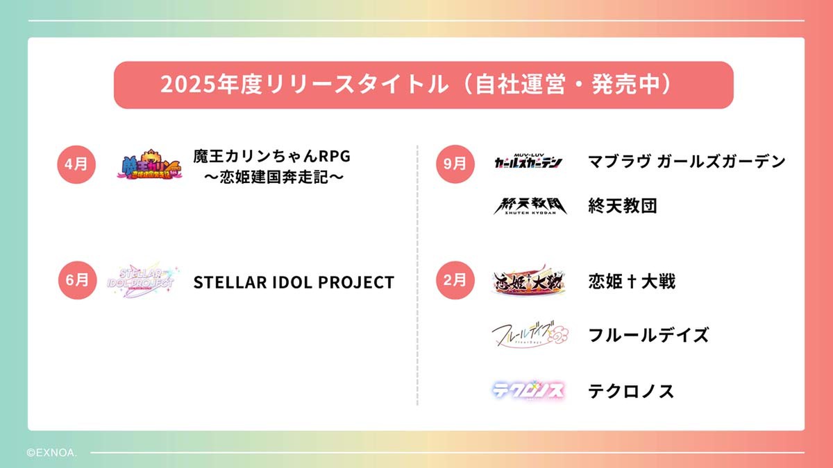 2025年度には7タイトルを発売/配信し、現在の運営中のパブリッシングタイトルは37本に。さらに、開発中のゲームとしては、運営型ゲームが14本、買い切り型ゲームが3本になるとのこと。