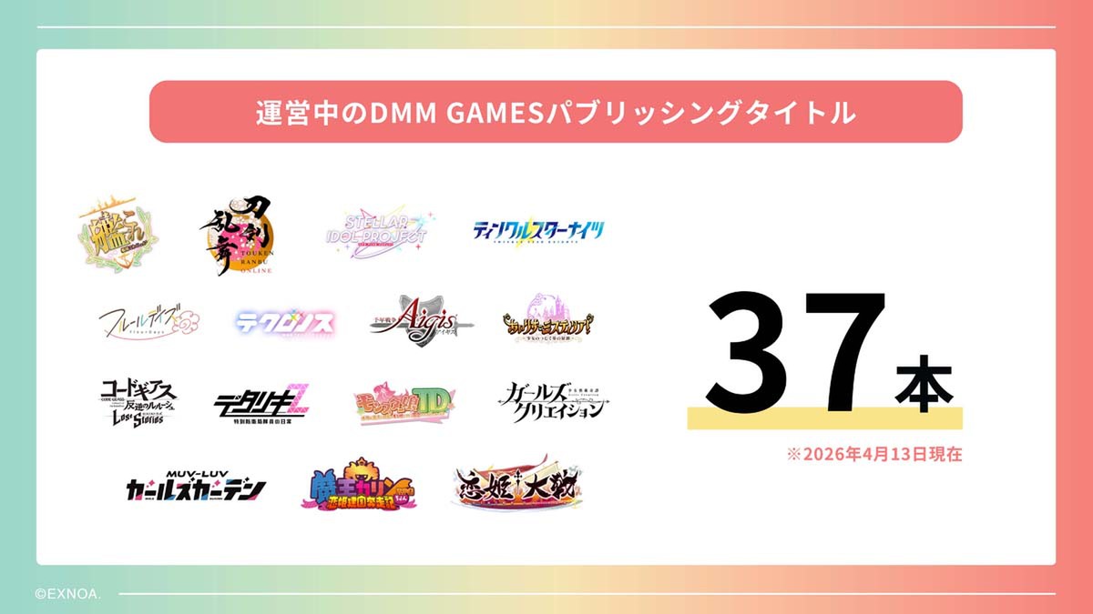 ブリーフィングは、DMM GAMESの全体概況から始まった。2026年2月の時点で、DMM GAMESのプラットフォーム会員数は約4000万人、配信しているオンラインゲームは263本になるという。