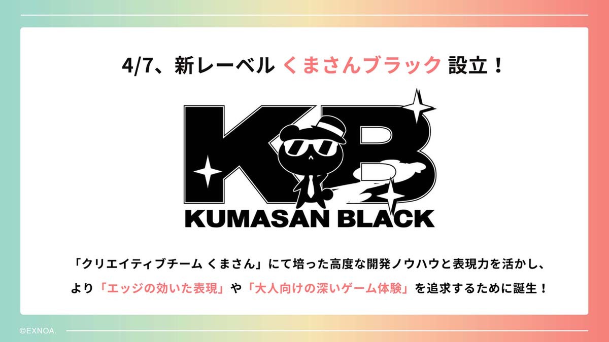 同スタジオの直近のタイトルは、3月18日にリリースされたクトゥルフ神話をテーマにした『邪神戦記ルルイエ少女隊』。また、4月17日は新レーベル「くまさんブラック」を設立。こちらのレーベルでは、「クリエイティブチーム くまさん」にて培った開発ノウハウを活かし、よりエッジの効いた表現や大人向けの深いゲーム体験を目指すとのこと。