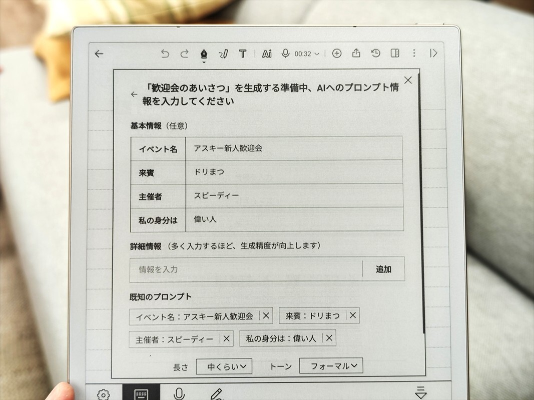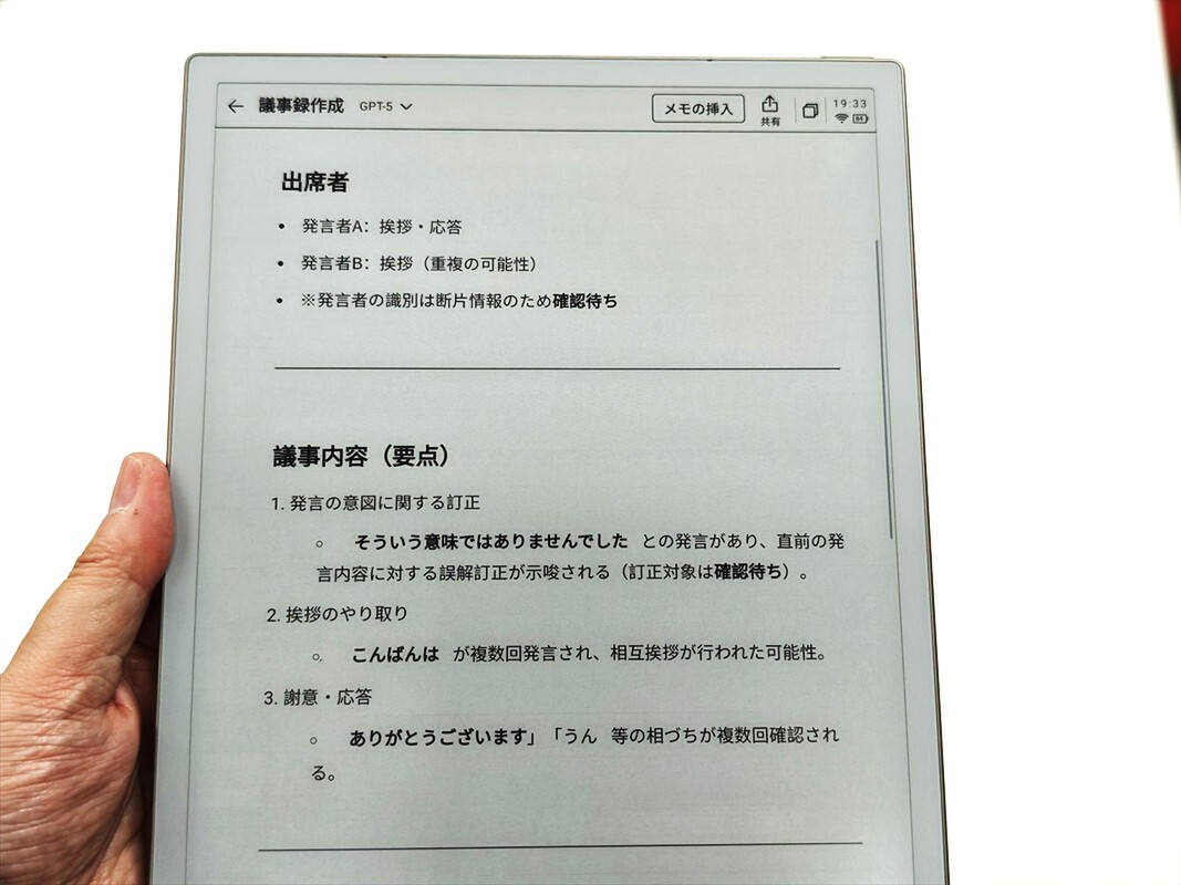 home > ガジェット > 【E-Ink電子メモ】iPadでも紙でもダメだった俺の終着駅、思考のスピードがバグるほど上がる! 前へ 1 2 3 4 5 あなたが買うべきガジェットは俺たちに選ばせてくれ! 推しガジェット大賞 2026 第106回 iFLYTEK「AINOTE2」 【E-Ink電子メモ】iPadでも紙でもダメだった俺の終着駅、思考のスピードがバグるほど上がる! 2026年04月24日 17時00分更新 文● スピーディー末岡/ヤマ 編集●ASCII ポストする AINOTE 2ギャラリー ■Amazon.co.jpで購入 iFLYTEK AINOTE 2 この記事をシェアしよう ポストする 前へ 1 2 3 4 5 週刊アスキーの最新情報を購読しよう Follow @weeklyascii カテゴリートップへ 本記事はアフィリエイトプログラムによる収益を得ている場合があります この連載の記事 この連載の一覧へ この記事の編集者は以下の記事をオススメしています 本命 Android版 E Inkデジタルペーパータブ「BOOX Max 3」を衝動買い シンプルがイイ! QWERTYキー付きのモノクロE Inkスマホ「Minimal Phone」 年初にAndroid搭載のカラーE Ink端末「Bigme B751c」を衝動買いして9ヵ月使ってみた 【決定版】電子書籍リーダーのおすすめベスト5【2026年3月版】 スマホなのにE Ink搭載、2画面モデルが登場へ Tweets by weeklyascii