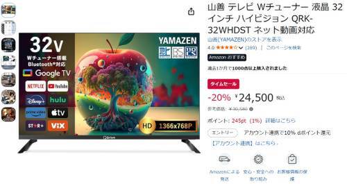 【Amazonタイムセール】山善 32インチ液晶テレビ「QRK-32WHDST」をチェック!