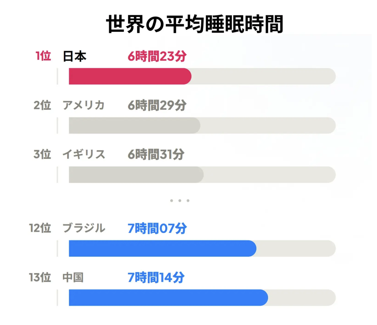 調査によると、日本人の平均睡眠時間は「6時間」が最多で、世界の主流である7〜8時間を下回っており、4年連続で最下位となりました。また、「週に1日も熟睡できない」と回答した人は8.3%で、世界平均5.1%を上回っています。
