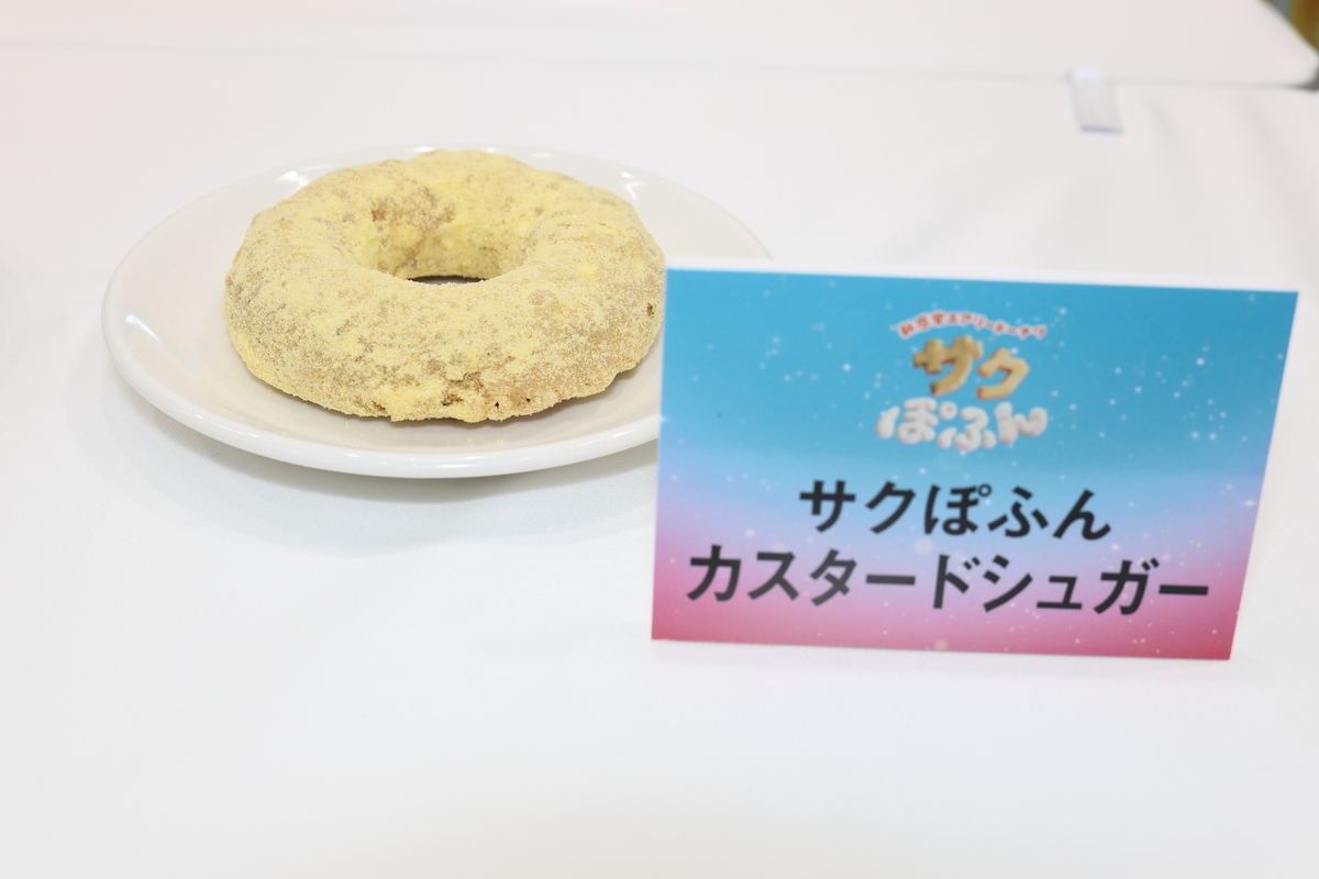 生地の食感をシンプルに味わえる2種類として、表面にはにはサクぽふんドーナツ生地と相性のよい、ミルクシュガーかカスタードシュガーをまぶして仕上げています。