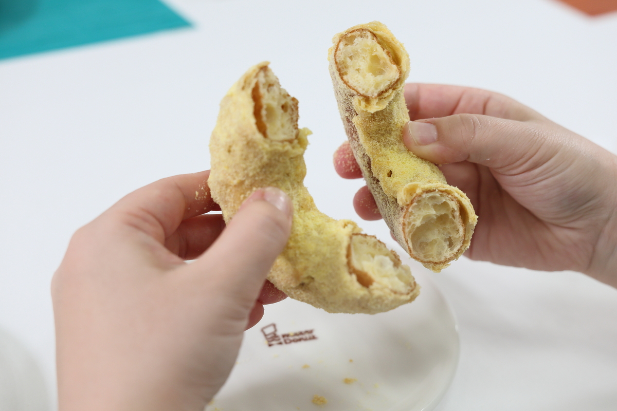 ミスタードーナツの担当者のお話では、この食感を生み出すまでにさまざまな失敗があったそうです。油っぽくなってしまったり、すぐにサクサクでなくなってしまうこと、生地がギシギシとしてしまうことなどがありつつも、開発を重ね今のかたちになったとのことでした。