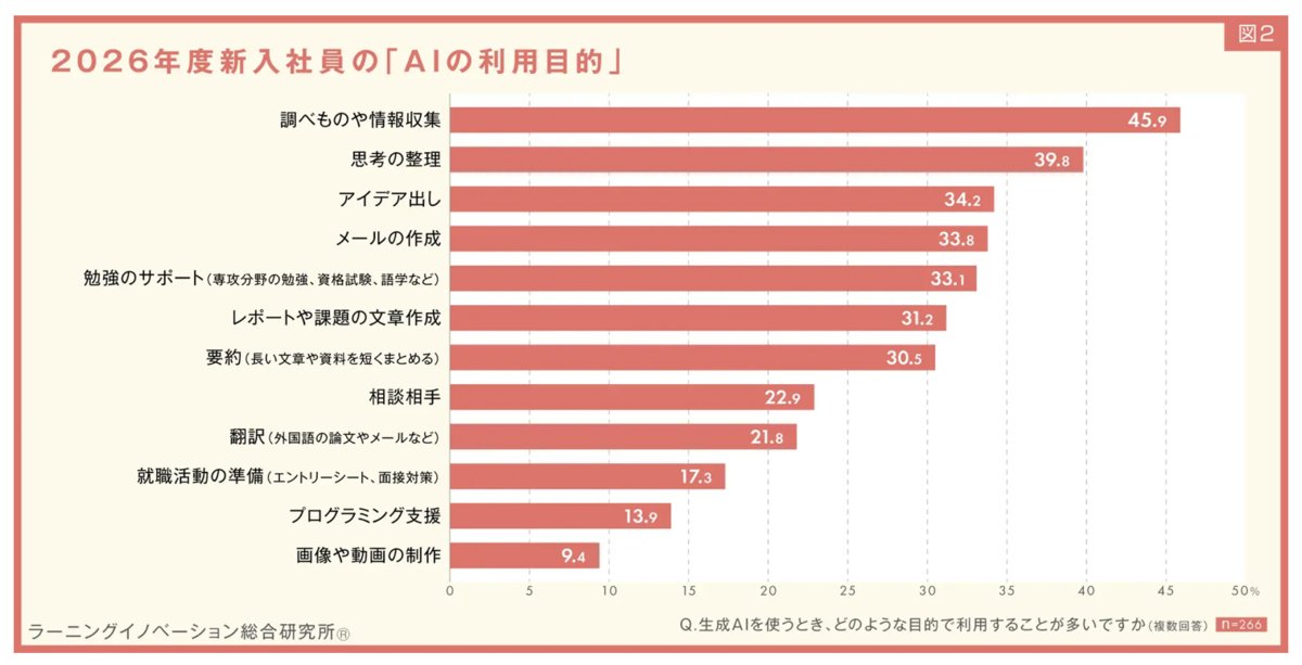 ■ALL DIFFERENT/ラーニングイノベーション総合研究所、2026年度新入社員のAI活用に関する調査