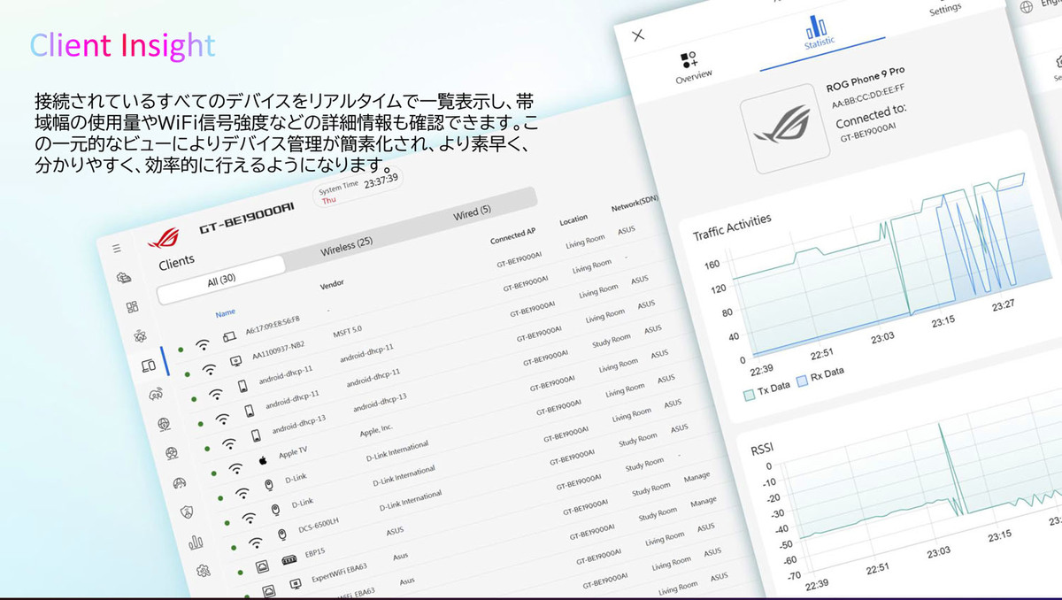さらに、AIを活用したセキュリティ機能も搭載。不審な通信の検知やデバイス保護を強化し、家庭内ネットワークの安全性を高める。