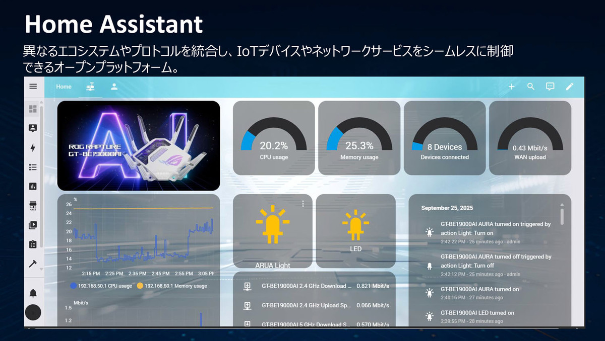 Wi-Fi 7の普及が進む中、「ROG Rapture GT-BE19000AI」は単なる高速ルーターにとどまらず、AIによる自動最適化とセキュリティを融合した次世代ネットワークハブとして位置付けられる。
