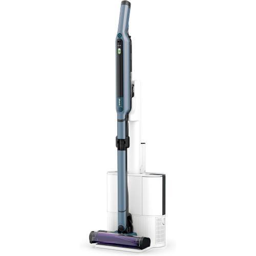 ワンタッチでハンディに切り替えられ、家具の上や狭い場所にもそのまま使える。掃除後はドックに戻すだけで充電とゴミ回収が完了し、片付けの流れがシンプルにまとまる。