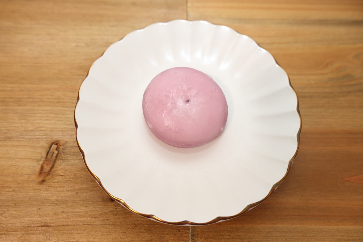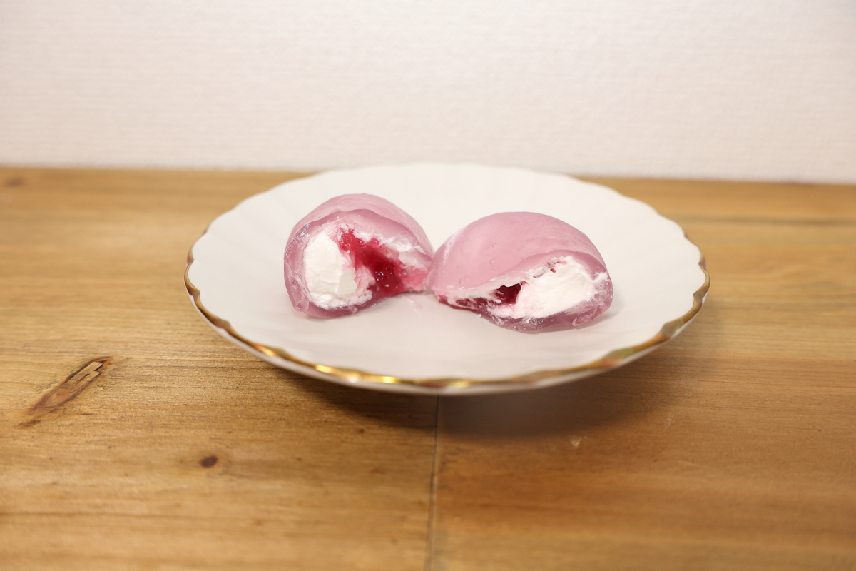 ぶどう味のソースとミルクホイップが包まれています。柔らかくてもっちもち。とろける食感に癒されました……。