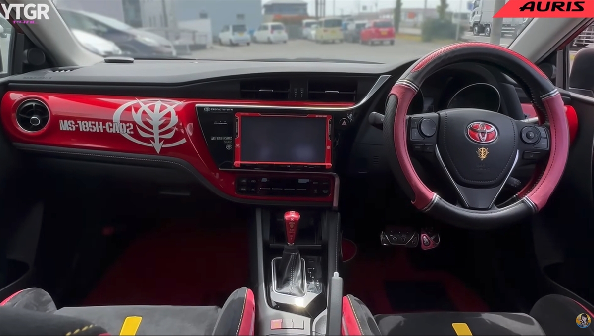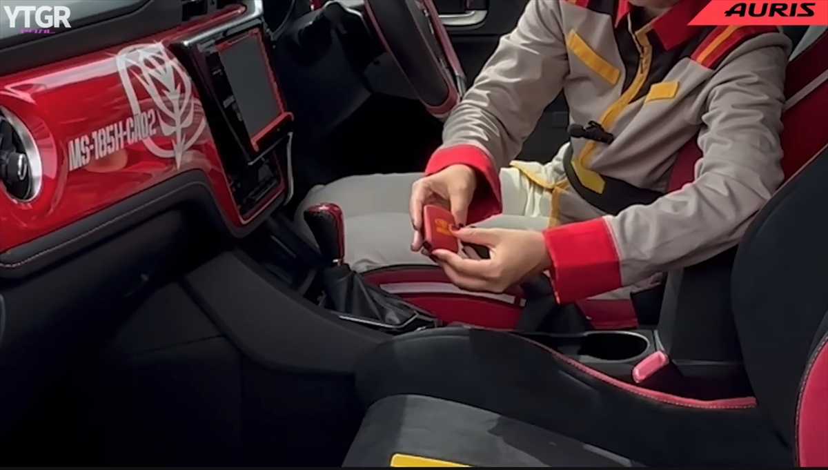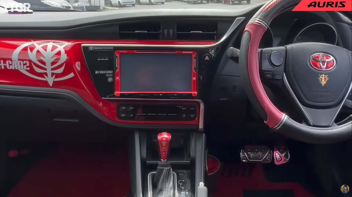 フロントにはトヨタマークではなく、「ジオニックトヨタ」のエンブレムが鎮座しています。オタク心をわかってやがる! ジオニックトヨタの社員め……!