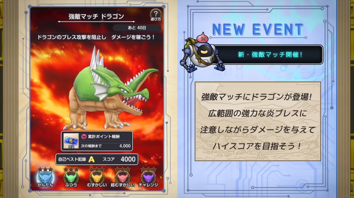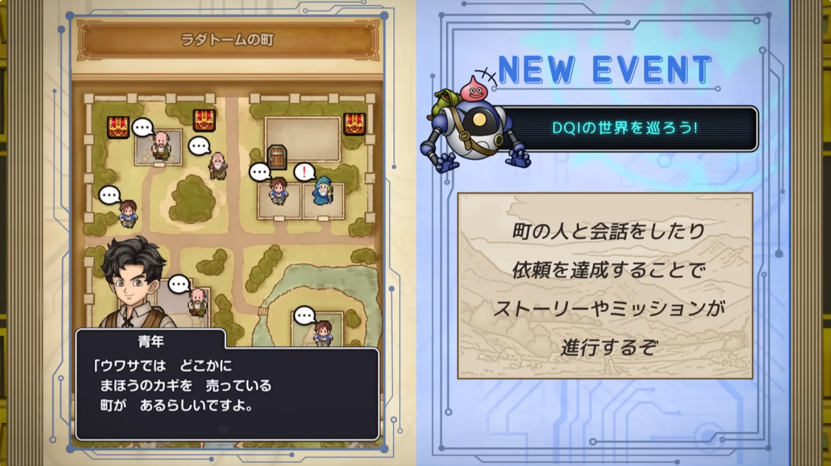 イベントでは、「DQIゴールド」を集めてさまざまな報酬を手に入れていく。DQIを象徴するボスとして、ゴーレム、ドラゴン、そしてりゅうおうの登場が示唆されていた。